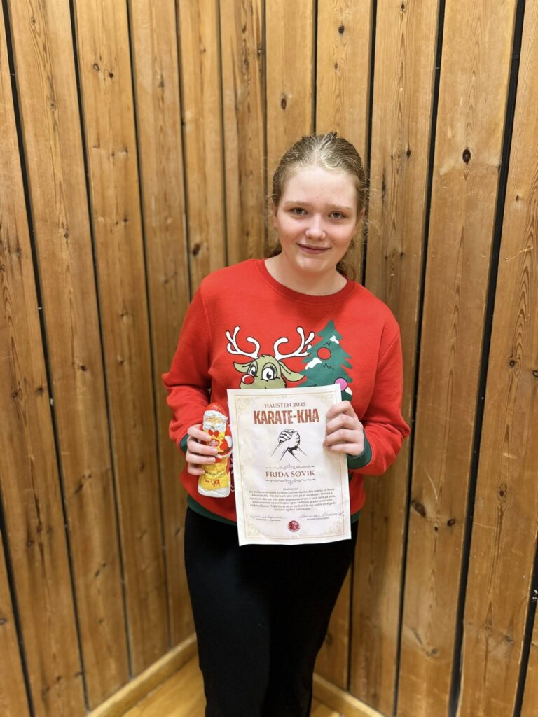 Da har vi hatt juleavslutning i klubben, og starter opp igjen med trening 5. januar! Vil gratulere igjen dei som vant, og Frida med å bli høstens Karate-Kha